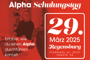 Die kurzweiligen Vorträge gaben wertvolle Einblicke in die Praxis, vermittelten wertvolle Tipps und Tricks und machten Mut, bei sich vor Ort einen eigenen Alpha durchzuführen. Ein Tag voller spannender Begegnungen über alle Alters- und sogar Konfessionsgrenzen hinweg mit einem gemeinsamen Anliegen: Menschen einen unkomplizierten und attraktiven Zugang zu Jesus Christus und zum Evangelium zu ermöglichen. Von den Teilnehmerinnen und Teilnehmern besonders gelobt wurde die tolle Atmosphäre und die professionelle Durchführung der Schulung. Wer sie in diesem Jahr versäumt hat oder erst Interesse an Alpha gefunden hat, der sei jetzt schon zum nächsten Schulungstag am 29. März 2025 eingeladen. Wie heuer wird sie auch dann wieder von der Katholischen Erwachsenenbildung im Bistum Regensburg e. V. in Kooperation mit der JUGEND 2000, dem Katholischen Evangelisationswerk Regensburg und der Charismatischen Erneuerung veranstaltet. Und wen bringen Sie mit zum Alpha-Schulungstag 2025 ?