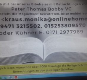 Beten wir für P. Bobby und lesen wir weiter vertrauensvoll die vorgegebenen Bibelstellen.
