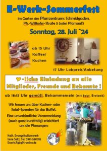 Wenn möglich bitte einen Salat oder einen Kuchen mitzubringen!